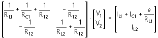 The solution to the node voltages defined by column matrix V is then: