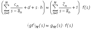 , f(s) is multiplied by an unknown function g(s), and a rational approximation equation for g(s) is introduced: