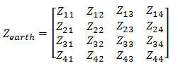 In the above diagram, cables 1 and 2 are underground and cables 3 and 4 are aerial. The Zearth and Pexternal (potential coefficient matrix for external field) matrices are given as follows: