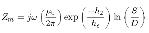 Equation 8-28 below gives the equation for mutual impedance corresponding to the form given by Pollaczek [7]: