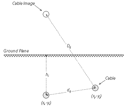 Distance between the centre points of the ith and jth cables [m]. |