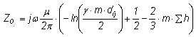 Combing Equations 8-26 and 8-27 results in the following for mutual impedance between aerial conductors,