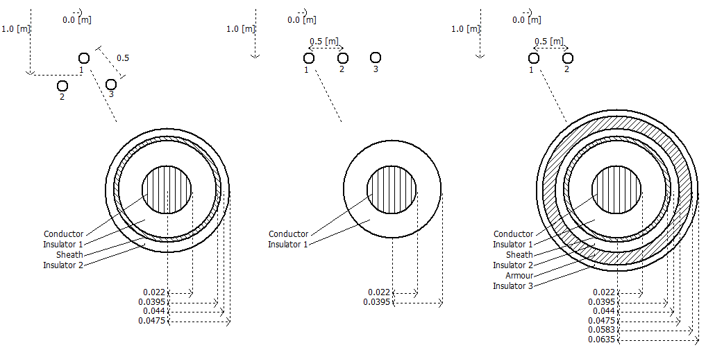 This cable component is used to model typical underground cable systems. It is meant to simplify the construction of such cable system cross-sections, by taking advantage of data duplication to simplify data entry, as well as provide formats more aligned with typical cable data sheets. The component can be adjusted to easily represent the following typical system configurations:
