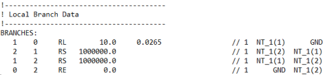 As can be seen above, the end-user would be able to reconstruct the circuit topology directly from the data file produced, once the project that the blackboxed component resides in is compiled. However, the parameter settings for the source are unknown. The user will not be able to determine what type of switch exists: It is simply written in as a default breaker, with no other information. The only issue that does remain is that passive element values, such R, L and C, can be gleaned from the data file. To alleviate this problem, a user-controlled option called Passive Branches, which is be default enabled, is available.