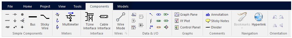 Components Tab in the Ribbon Control Bar: Left-click on any of the buttons and then move the mouse pointer over the schematic canvas. You should see the object attached to the pointer. Continue to move the object to where it is to be placed and then left-click again.