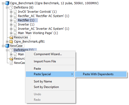 Next, select the destination project, right-click on its definitions branch and select Paste.