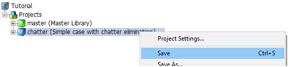 You can also save by simply right-clicking on the project within the workspace pane, and selecting Save from the pop-up menu.
