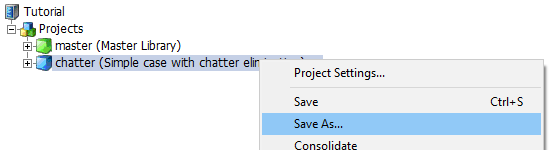 Click the Save button to save the project under a different file name. The project name should then change in the workspace window, indicating that the project was indeed renamed. Note that the project namespace is synchronized with the filename at this point (if saving a case project).