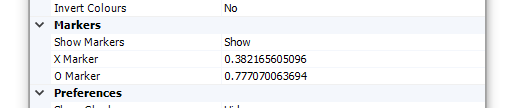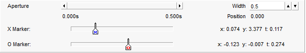 The current viewing window can be moved directly to the position of either marker: Simply left-click either the blue or the red arrow (blue for the X marker and red for the O marker). This functionality, along with setting the markers, can be used to 'bookmark' viewing positions on the graph.