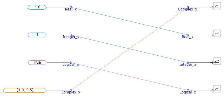 The colour of the virtual control wire indicates the data type of control signal is connecting. The colour legend is provided below: