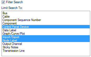 This is the string of text you would like to search for. Note that PSCAD maintains a history of previously searched items. Simply enter the first letter and whatever similar searches were performed in the past will appear in a drop list.