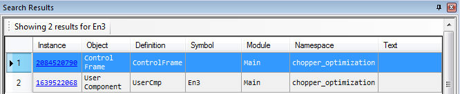 Search results are located in the Search Results window. This window will automatically open upon performing a search. Any result matching the search criteria will appear in a list form as shown below: