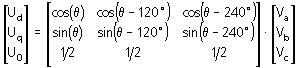 The generalized machine model transforms the stator windings into equivalent commutator windings, using the dq0 transformation as follows:
