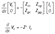 The 'g' and 'c' subscripts represent the conductor and ground groups respectively. In the case of eliminating ground wires, it is assumed that Vg = 0.0, which leads to:
