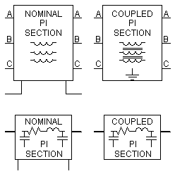 Whenever possible, the Coupled P-Section option should be chosen. This option uses the coupled RL transformer model in EMTDC (as shown above) to model the zero sequence effects, thus avoiding the extra neutral branch in the Nominal P-Section for the zero-sequence.