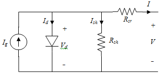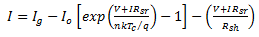 Substitution of relevant expressions for the diode current Id and the shunt branch current Ish yields: