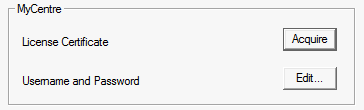 If you MyCentre account is already setup, simply press the Acquire button to get your license. To setup a MyCentre account, see Certificate Licenses for details. Your MyCentre username and password may also be edited from this dialog.