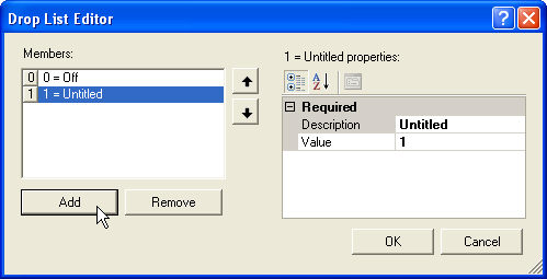 The Drop List Editor will appear. To add choices to the list, click the Add button.