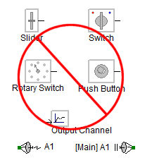 If the module you want to blackbox contains some or all of these components, then they must be removed and/or substituted by supported components. Input-based components, such as the slider, switch and dial, can be substituted in one of two ways: The preferable method is to move them out of the module so that their signal is passed via a port or parameter: