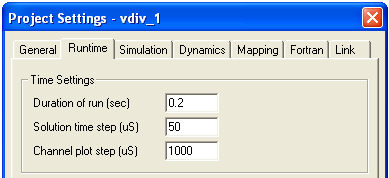 Open the Project Settings dialog window as described in Editing Project Settings above. Click the Runtime tab and, in the Time Settings area, enter a new Channel Plot Step time in microseconds (ms). Click the OK button to save changes and exit the Project Settings dialog.