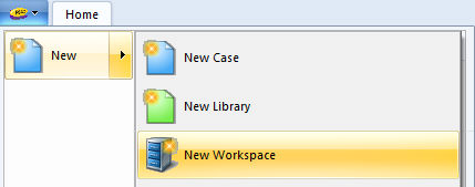 Click the PSCAD tab in the ribbon control bar, hover mouse pointer over New, and select New Workspace.