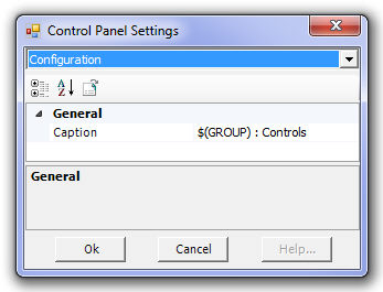 A user wants to display the Group Name of all interfaces within a control panel. The default Caption parameter in the control panel settings dialog is $(GROUP) : Controls. Two interfaces are then inserted into the control panel, one called Firing Angle with group name Firing Control, and the other named Volts with group name Monitoring. The resulting caption will appear as illustrated below: