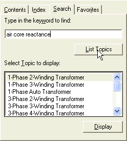 In the figure below, for example, a user is looking up air core reactance. Entering air will bring the list window to the nearest matching word.